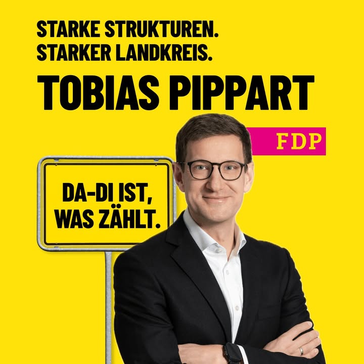 Tobias Pippart | Erzhausen | Listenplatz 5 Ich kandidiere für den Kreistag, weil unser Landkreis funktionierende Strukturen braucht – nicht große Worte. Zwischen wachsendem Ballungsraum und ländlichen Gemeinden stehen wir vor klaren Herausforderungen: Verwaltung, Finanzen, Mobilität, Bildung. Hier braucht es sachliche Entscheidungen und eine klare Prioritätensetzung. Ich stehe für: ✔ effiziente Kreisverwaltung statt wachsender Bürokratie ✔ starke Kommunen mit echter Gestaltungskraft ✔ solide Finanzpolitik ✔ wirtschaftliche Entwicklung als Grundlage für Wohlstand Der Landkreis muss handlungsfähig bleiben. Dafür trete ich an – pragmatisch, lösungsorientiert, liberal.